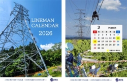 ETSグループ(東京都豊島区、上江州剛社長)は、送電線工事を担う「ラインマン」の写真を収めた2026年版のカレンダーを作製した。一般向けに抽選でプレゼントも行っている。