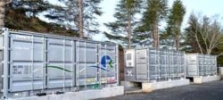 だいご蓄電所の3基の蓄電池。停電時に避難所に電力を供給する(茨城県大子町)