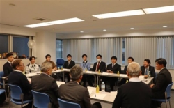 若手社員がざっくばらんに意見を交換した 送電線建設技術研究会関東支部(支部長=文挾誠一・関電工会長)は16日、初の若手社員意見交換会を開催した。入社から数年が経過し、ある程度現場経験を積んだ若手社員約10人が参加。仕事の悩みを中心に、幅広いテーマでざっくばらんに話し合った。若手同士だけでなく、オブザーバーとして参加した4人のベテランとも交流する機会となった。