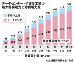 データセンター・半導体工場の最大需要電力と需要電力量
