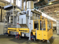 アンモニア専焼バーナーを搭載した熱処理炉(写真)を導入し、製品の仕上がりが従来燃料と比べても遜色ないことを確認した