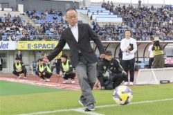 ヴォルティスの試合開始前に行った宮本社長のキックインセレモニー ⓒTOKUSHIMA VORTIS