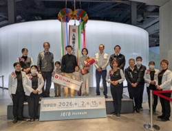 JERA碧南火力発電所のPR館「JERA park HEKINAN」(愛知県碧南市)の累計入場者数が15日に250万人を突破した。250万人目の来場者となったのは、碧南市在住の高松弥彦さん一家。同日に体験型ミュージアム「JERA museum HEKINAN」で記念式典が開かれ、高松さんに花束と記念品が贈られた。