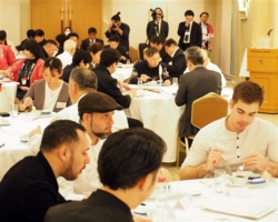 銀座周辺の高級飲食店から集まったシェフらが真剣な表情で試食していた