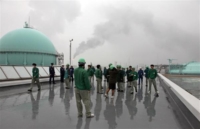 屋上に避難した仙台市ガス局の職員たち。職員に人的被害はなかった(仙台市ガス局提供)