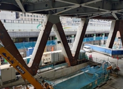 三角形の骨組みによって耐震性能を向上させる 三菱地所と三菱地所設計、清水建設の3社は、建設中の「Torch Tower(トーチタワー)」(東京都千代田区)で、その防災・耐震技術を報道陣に公開した。2028年の竣工を目指すトーチタワーは高さ約385メートルを誇り、日本一高い超高層ビルとなる。タワーが建つ地盤は長周期地震動による影響を受けやすいため、建築基準法が定める耐震性能の2倍超を満たす構造を採用する。停電対策ではコージェネレーションシステムを備えるほか常盤橋変電所と関東近郊の基幹変電所の2系統で接続し、安定した電力供給体制を整備する。