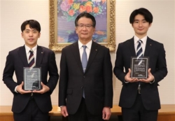 全国大会で安立さんは電工職種、床枝さんは情報ネットワーク施工職種で金賞に輝き、26年に中国・上海で開かれる第48回技能五輪国際大会への出場権を獲得した。上坂隆勇社長が認定証を授与し、エキスパートは計28人となった。