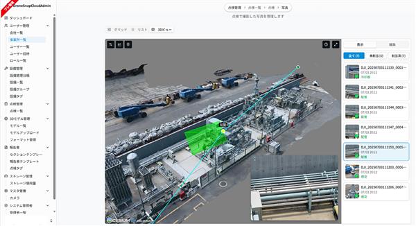 三井E&Sはドローンによる設備点検データを管理・評価するソリューション「ドローンスナップクラウド」の提供を1日に開始した。同社が提供している飛行ルートの自動作成アプリと連携させることで、点検現場の撮影から評価、リポートの作成までをデジタルで一元管理できる。