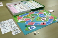 ゲームの名称は「地層処分って何だろう? ジオ・サーチゲーム」。中学生を対象に、エネルギー・原子力や地層処分に関する授業教材として作成した。県議会議員となったプレーヤーは、県内6つの市町村の中で地層処分に適している地点はどこか、各班で話し合う。