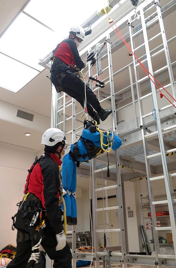 同日は秋田火力発電所構内に設置した設備を公開。けがなどの際の応急処置を学ぶ訓練や、重量物を安全に運搬する「マニュアルハンドリング訓練」などを展開する。屋内に設置した垂直はしごを用いた高所作業訓練では、はしご上で意識を失った人の救命方法などを学ぶ。屋外に設置した高所からの緊急降下訓練では、ナセルでの火災などを想定し、安全な降下方法などを学習する。