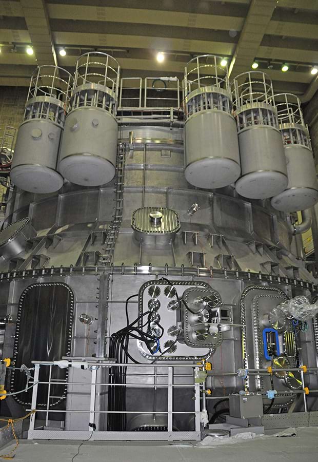 量研機構は21日、報道向けにJT―60SAの撮影会を開いた。JT―60SAの機器設計や組み立て作業に携わってきた那珂研究所トカマクシステム技術開発部の松永剛・上席研究員は、「ここまで苦労もあったが、ようやくスタートラインに立てる」と感慨深げに語った。